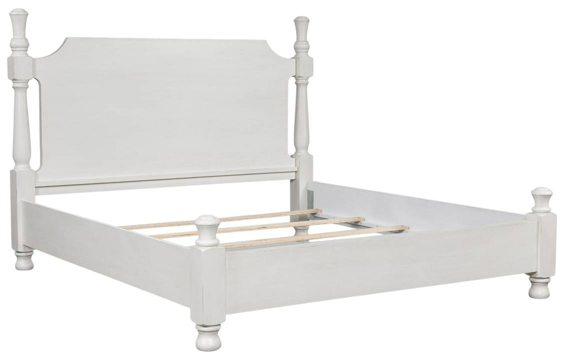 Taking a laid-back approach to casual traditional design, this artfully crafted queen poster bed features a handsomely hefty yet fashionably proportioned silhouette. Its rubbed antiqued white finish exudes a comfy, timeless appeal that's sure to carry you away to a dreamy time and place. This easy-to-love look makes just the right statement.